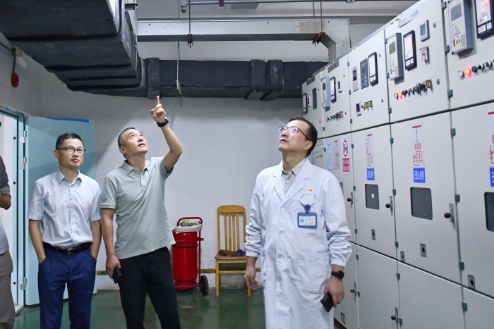 News为切实保障中秋、国庆“双节”期间医院各项工作平稳有序开展,为广大患者提供安全可靠的就医环境,9月29日上午,我院党委副书记、院长张文俊带领设备科、信息科、总务科、保卫科等科室负责同志,对我院南区开展了全面且细致的安全生产检查工作。